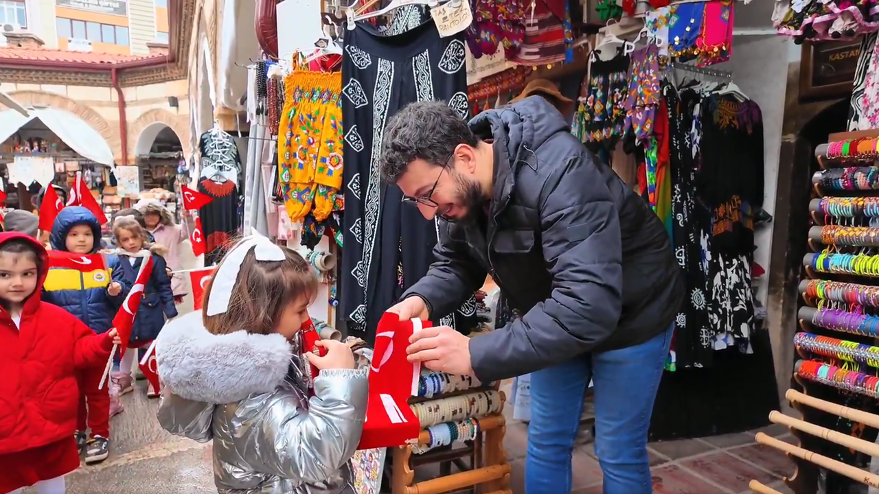 Kastamonu İl Milli Eğitim Müdürlüğü'nden yapılan açıklamada, "Anasınıfı öğrencilerimiz esnaflarımıza Türk bayrağı hediye ederek bayrak sevgisini ve millî birlik bilincini küçük yaşlardan itibaren yaşamanın anlamlı bir örneğini sergiledi. Geleceğimizin teminatı olan çocuklarımızın yüreklerinde dalgalanan bayrak sevgisi, aziz milletimizin birlik ve beraberliğinin en güzel göstergesi oldu." ifadelerine yer verildi.