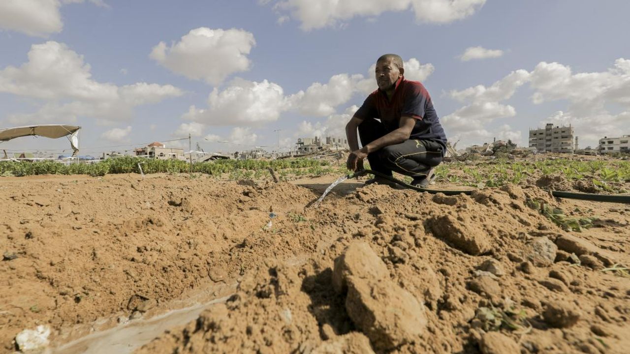 Gazze Şeridi'nde bir zamanlar on binlerce insanı doyuran tarlalar şimdi patlamamış mühimmatla kaplı ölü alanlara dönüştü. İşgal rejiminin 2023 Ekim’inde başlayan soykırımıyla birlikte her şey sona erdi. Araziler yasak bölgelere dönüştü, seralar yerle bir edildi, sulama hatları parçalandı, kuyular kum ve molozla doldu.