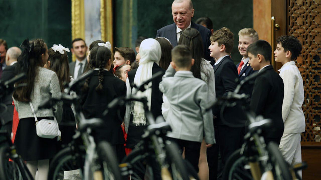 Programın sonunda, Cumhurbaşkanı Erdoğan tarafından çocuklara bisiklet armağan edildi.