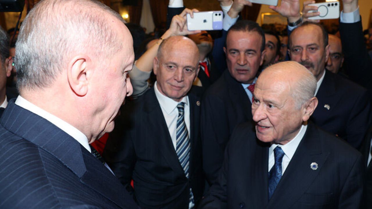 Cumhurbaşkanı Erdoğan, resepsiyonda MHP Genel Başkanı Devlet Bahçeli ile bir süre ayaküstü sohbet etti. DEM Parti Eş Genel Başkanı Tuncer Bakırhan, TBMM Başkanvekili Pervin Buldan ve DEM Partililerle görüşen Cumhurbaşkanı Erdoğan, Fenerbahçe Kulübü Başkanı Sadettin Saran ve diğer davetlilerle de selamlaştı