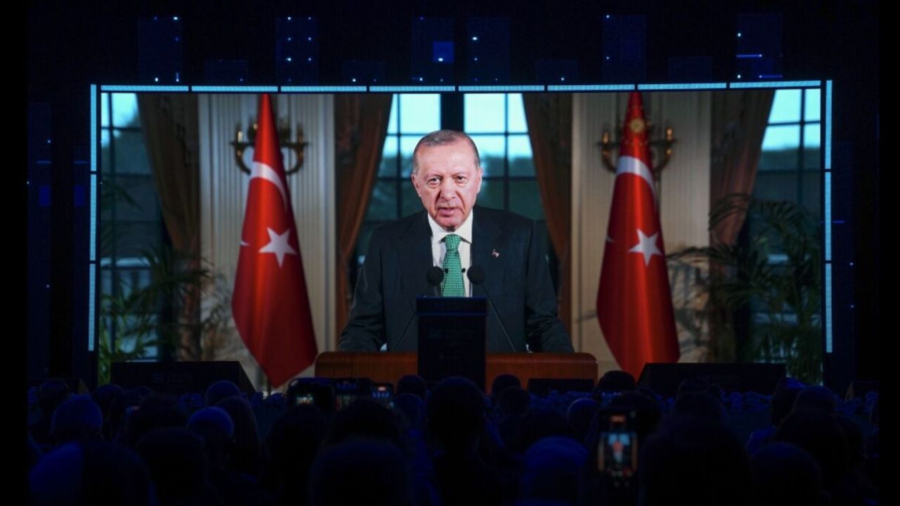 Cumhurbaşkanı Erdoğan, "İkinci Cihan Harbi sonrası galipler eliyle tesis edilen uluslararası sistem neredeyse her alanda büyük bir meşruiyet krizi yaşıyor. Sistemin temelini teşkil eden kurum, kural ve değerler manzumesi günden güne işlevini yitiriyor. Güç rekabetinin enerji, teknoloji ve ticaret gibi farklı alanlara yayıldığı, sorunların diyalog yerine silahla çözülmeye çalışıldığı, soykırımların, savaşların ve krizlerin giderek daha da tırmandığı zorlu bir dönemden geçiyoruz. Gazze'de olduğu gibi hepimizin yüreğini sızlatan trajedilerin sona ermesi, bölgemiz başta olmak üzere tüm dünyada barış, huzur ve istikrarın yeniden temin edilmesi geçmişte hiç olmadığı kadar önemlidir." değerlendirmesinde bulundu.