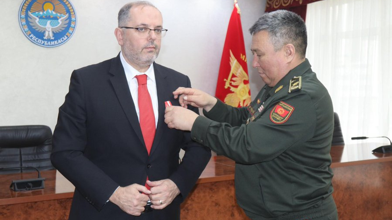 Milli Savunma Üniversitesi Rektörü Prof. Dr. Erhan Afyoncu'ya Kırgızistan'da madalya takdim edildi.