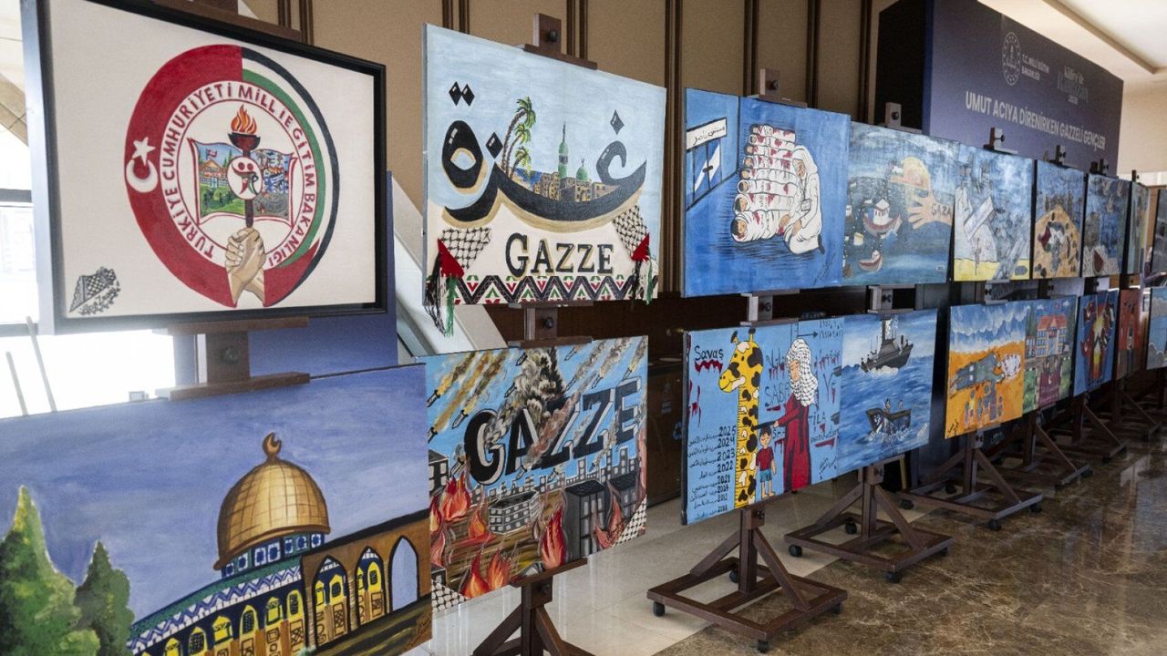 Yarım kalan eğitimlerine devam edebilmek için Millî Eğitim Bakanlığının yaz okuluna katılan 13 Filistinli öğrencinin yağlı boya ve akrilik çalışmalarından oluşan 101 eserinin yer aldığı sergi de Beştepe Millet Kongre ve Kültür Merkezinde ziyaretçilerini ağırlamayı sürdürdü.