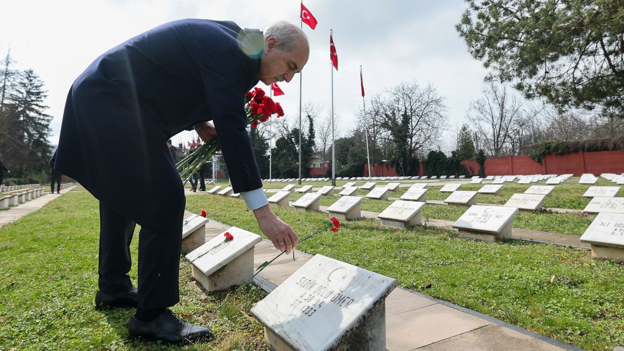 Kurtulmuş, ziyaretinde, şehitlik anıtına, üzerinde "TBMM Başkanı" yazılı kırmızı beyaz karanfillerden oluşan çelenk bıraktı. Kur’an-ı Kerim okunmasının ardından dua eden Kurtulmuş, mezarlara da karanfiller koydu.