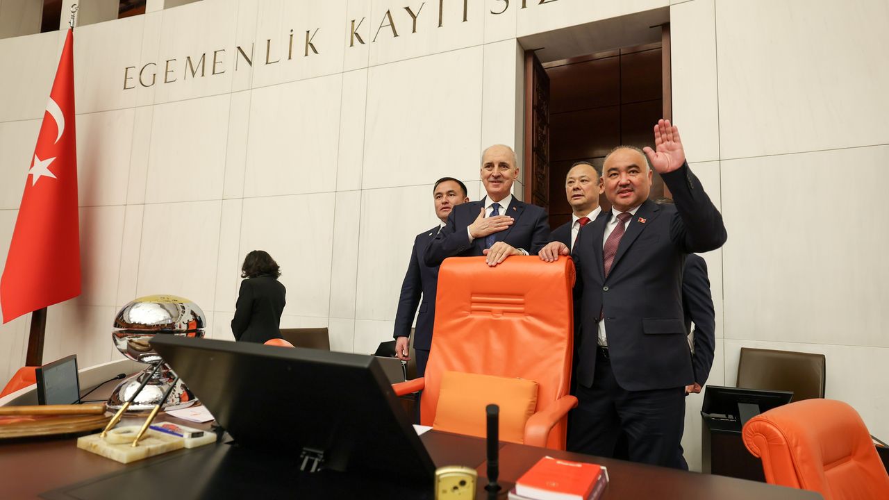 Numan Kurtulmuş, Türkiye’ye resmi ziyaret gerçekleştiren Kırgız Cumhuriyeti Jogorku Keneşi (Milli Meclisi) Başkanı Nurlanbek Turgunbek Uulu ile Meclis'te ortak basın toplantısı düzenledi.