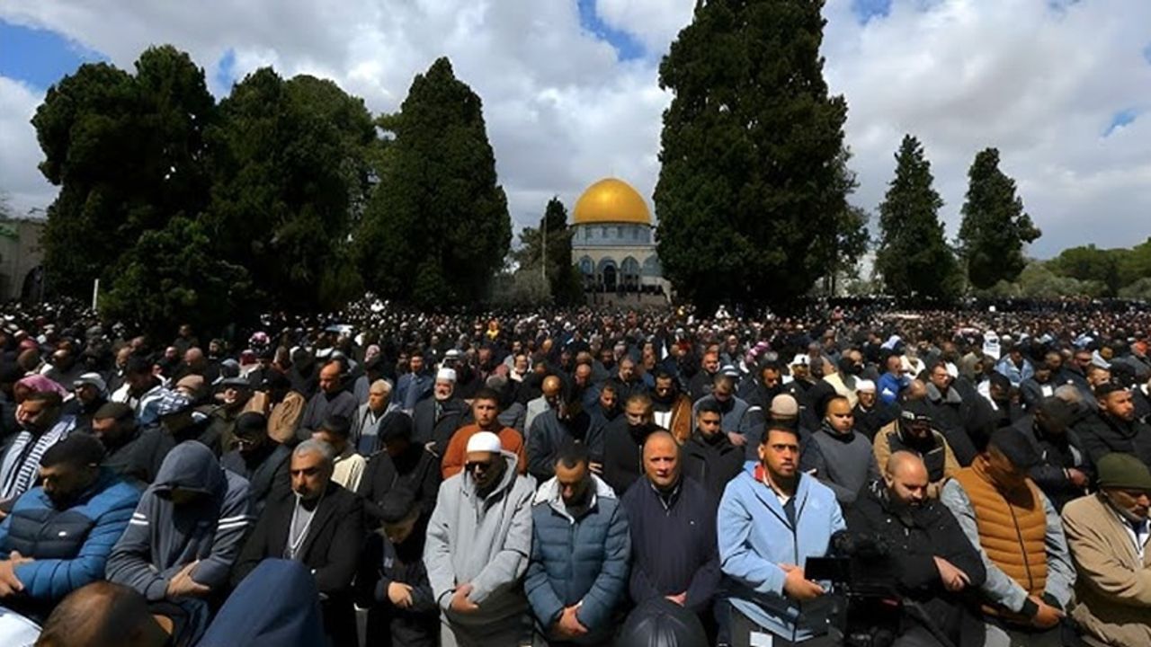 İşgal altındaki Kudüs'te bulunan Müslümanların ilk kıblesi Mescid-i Aksa, İsrail güçlerinin uyguladığı yoğun kısıtlamalara ve askeri engellere rağmen cuma namazında 60 bin Müslümanı ağırladı.