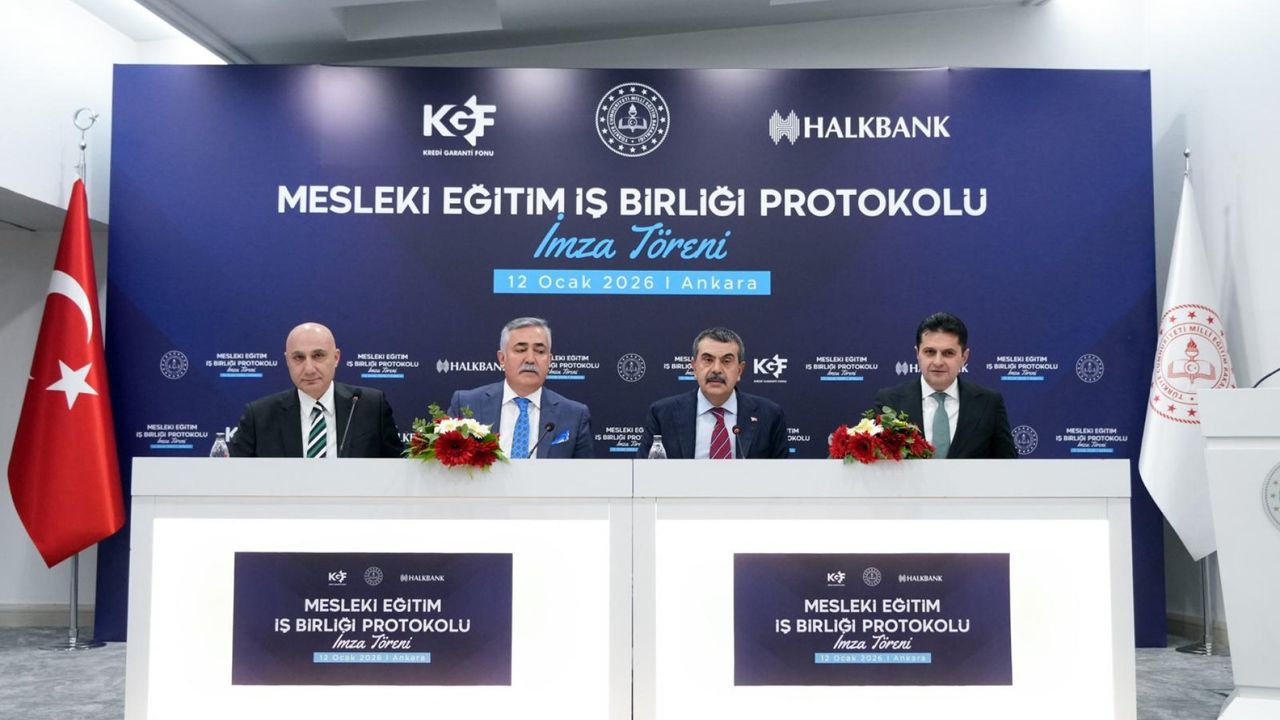 Mesleki ve teknik ortaöğretim kurumlarından mezun olan 29 yaş ve altı gençlerin girişimcilik yoluyla kendi işlerini kurmaları ve mezuniyet alanlarında istihdam edilmelerini teşvik etmeye yönelik iş birliği protokolü; Milli Eğitim Bakanlığı, Kredi Garanti Fonu (KGF) ve Halkbank arasında imzalandı.