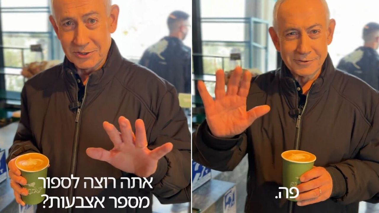 Sosyal medya hesabından bir kafede çekilmiş görüntüsünü paylaşan Netanyahu, "Kahve için ölüyorum. Halkım için olüyorum. Peki onlar bana nasıl davranıyor? Muhteşem! Parmaklarımı saymak ister misiniz?" dedi.