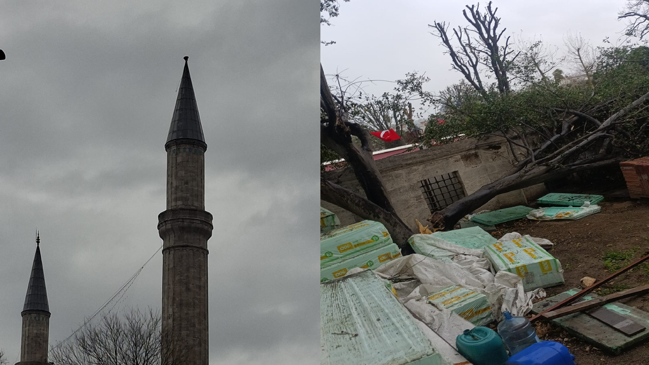 Diğer taraftan, Ayasofya-i Kebir Cami-i Şerifi bahçesinde devrilen ağacın ise belediye ekiplerince kontrollü şekilde kaldırılacağı belirtildi.