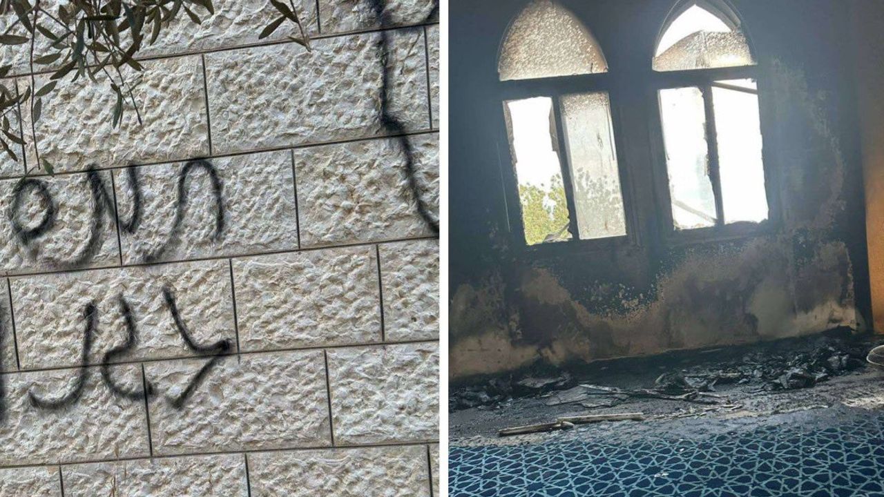 Filistin Enformasyon Merkezi'nin haberine göre, bu sabah erken saatlerde meydana gelen olayda, Yahudi yerleşimciler camiye saldırdı, caminin bir bölümünü yaktı ve duvarlarına ırkçı sloganlar yazdı.