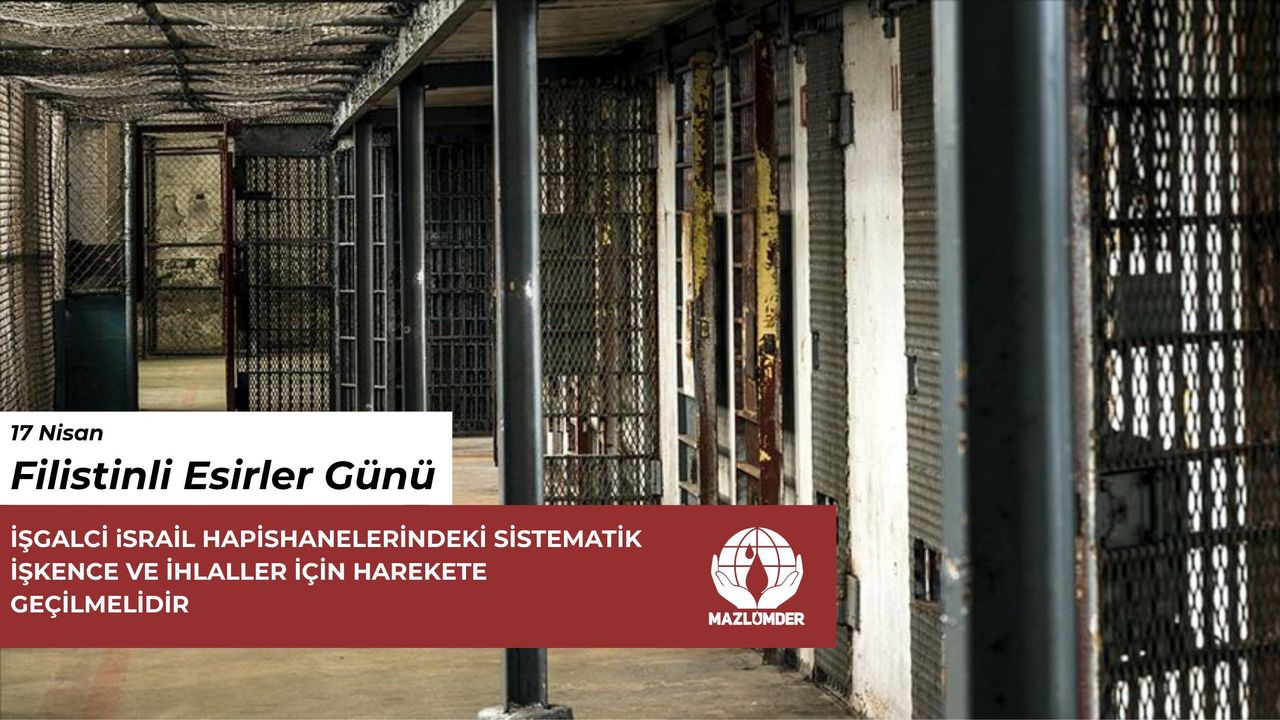 17 Nisan Filistinli Esirler Günü dolayısıyla yapılan açıklamada, "İsrail hapishanelerinde on yıllardır devam eden sistematik işkence, tecrit ve keyfi tutuklamalar son dönemde giderek artmış ve tutsak edilen Filistinli esirlerin sayısı 9 bin 600'ü aşmıştır." denildi.